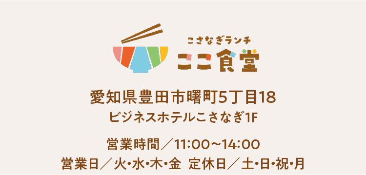 こさなぎランチ ここ食堂 名鉄三河線土橋駅徒歩5分